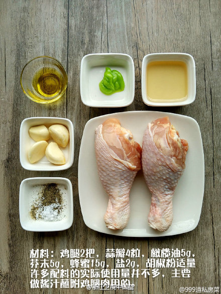 鸡腿为主料,附蘸少许蜂蜜和蒜末,香甜可口!!超美味!