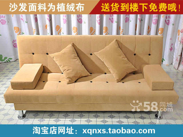 布艺三排扣沙发低价出售,面料是高档植绒布的。沙发可以当床用。是全新的哦!可以免费送货到楼下的!他们家沙发淘宝店网址:http://xqnxs.taobao.com。联系电话 任先生