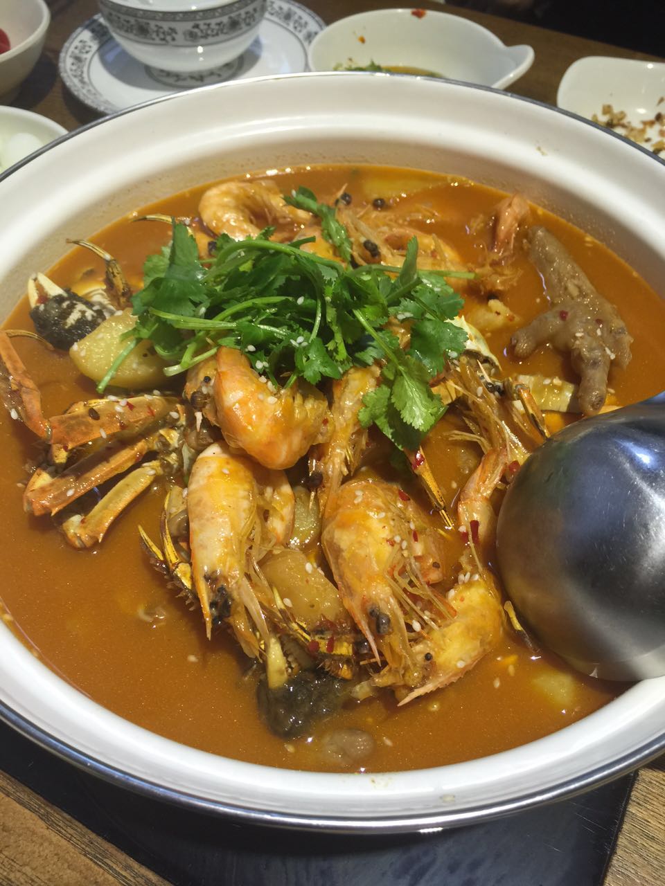 我也算是吃过好多地方的虾蟹煲了,一直已来都没找到不腥的。这个真的没话说~~棒极了~~~