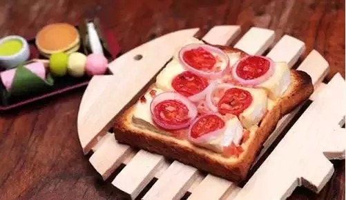 面包(两片)、火腿(一块)、小洋葱(半个)、西红柿(一个)、奶酪(适量)