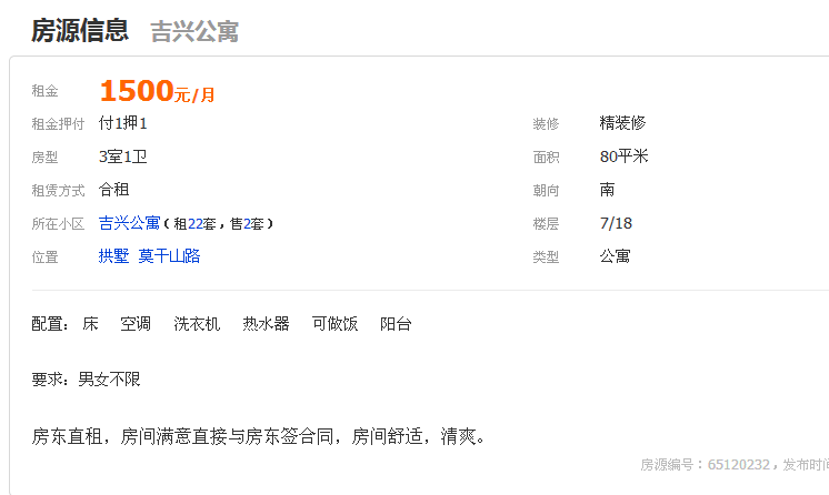 » 吉兴公寓 1500/月