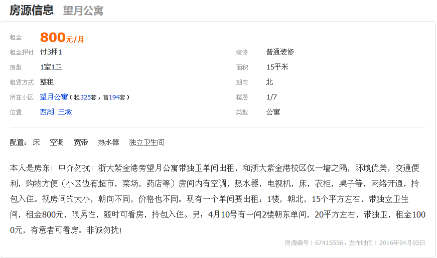 望月公寓,独立卫浴,800/月