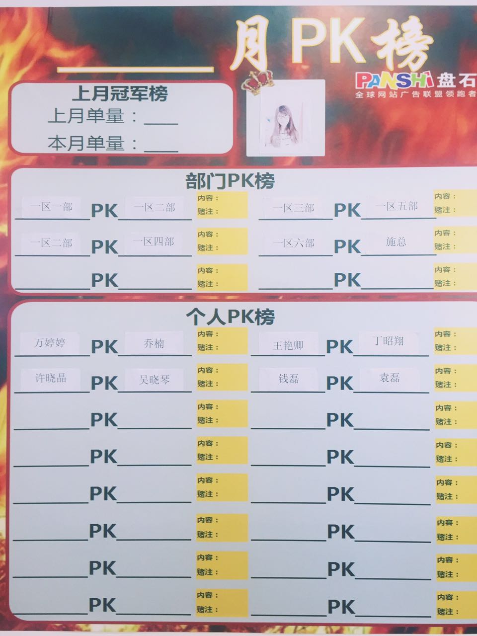 “PK榜单”分为部门和个人,两大模块