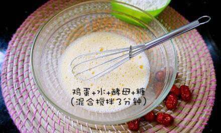 鸡蛋+水+酵母+糖(混合搅拌3分钟)