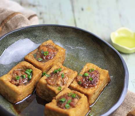这道酿豆腐,又称客家酿豆腐,是广东客家地区的名菜之一,我们稍许变通就可在家制作,味道醇厚好吃,即使春节满桌佳肴,这样的菜也一样受欢迎,因为落胃而温暖!