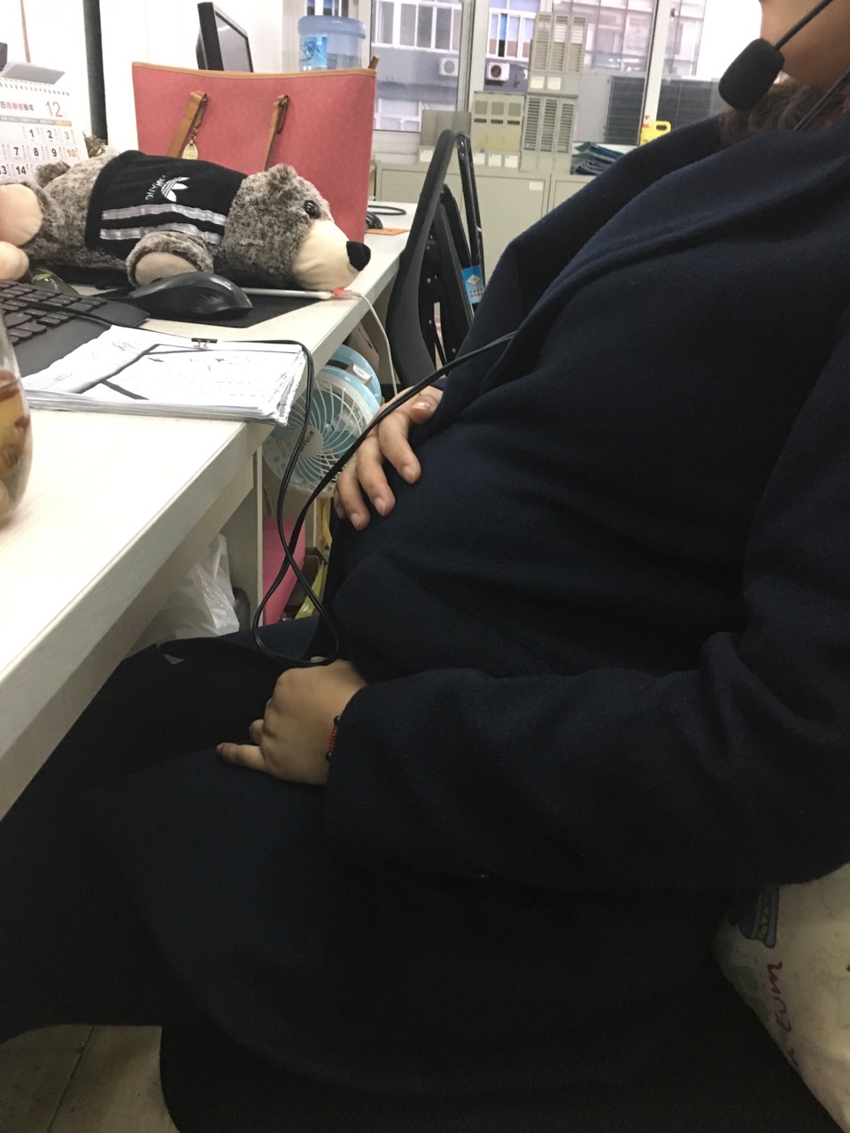 看!哪家孕妇这么大肚子还来上班,生活不易啊。唉。。。