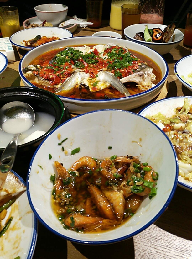 老大请产假前的部门聚餐。满满的一桌全是“爱”,香辣的剁椒鱼头,滑嫩的油爆大虾,暖胃的山药排骨,和已经被清盘的炒青菜...