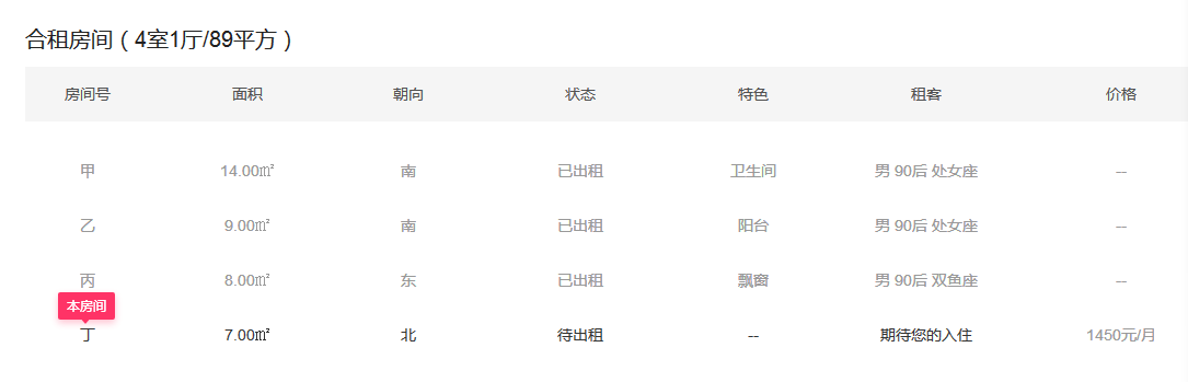 紫元尚堂四房两卫合租,次卧朝北,全明双玻璃,采光很好1450元/月