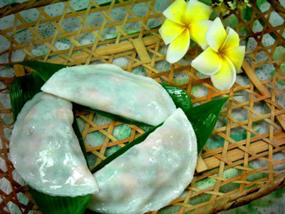 娥姐粉果是广东省传统小吃。特点是榄核形,芫荽蟹黄的色素透露于外,又青又黄,吃口鲜甜。