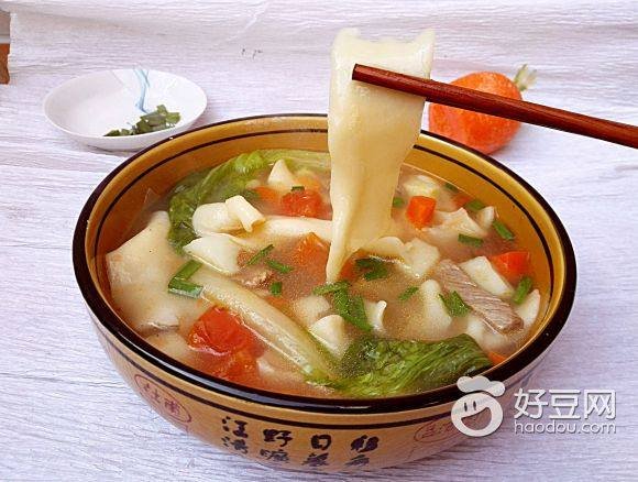 招聘专员 黄佳娜(文)2019年3月5日 新疆汤饭是新疆的一种特色美食,以牛羊肉为主要原料。        将肉切成丝, 和粉面酱油拌匀, 热油锅里翻炒一分钟后加姜丝,花椒,八角和盐,再炒两分钟后将切碎的西红柿和部分洋葱放如锅中继续翻炒两分钟后,添水,放入切好的土豆块。开始煮汤 这时候和面,记住和面水中要加少许盐(和三斤面的水里大约放两汤勺的盐)。面和成型后稍放一会,再揉五分钟,如此反复三四次,每次放的时间为5-7分钟。        最后揉好的面放在面板上摊平,切记面板上要摸清油以防粘面。然后蒙上保险膜等待锅开下面。 锅内汤烧开后即可下面。下面把面切成一指粗的条,用手掌压扁后拉长,揪成手指节长短的片,扔在滚汤锅里。下面速度要快,以防面煮过头。 面下完后即可将切好的芹菜杆丝,洋葱丝,辣椒丝和蒜末香菜到入锅内,这时就可以关火。了。这时尝尝咸淡,可调节盐的量。另需滴少许醋。搅一搅,一锅美味的新疆汤饭就出锅了。 (注意文中的面是指揪片子)
