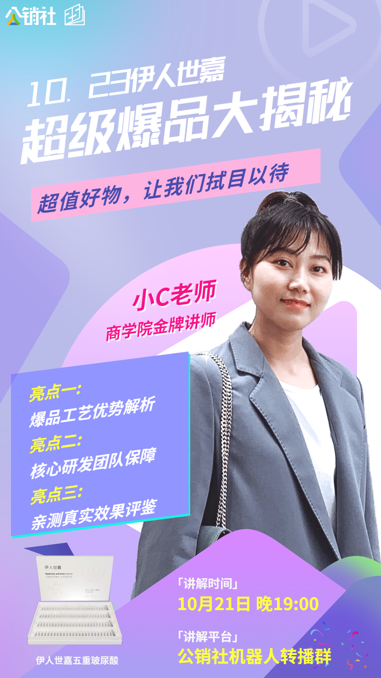 公销社微信机器人转播群:商学院金牌讲师小C老师——《超级爆款大揭秘》