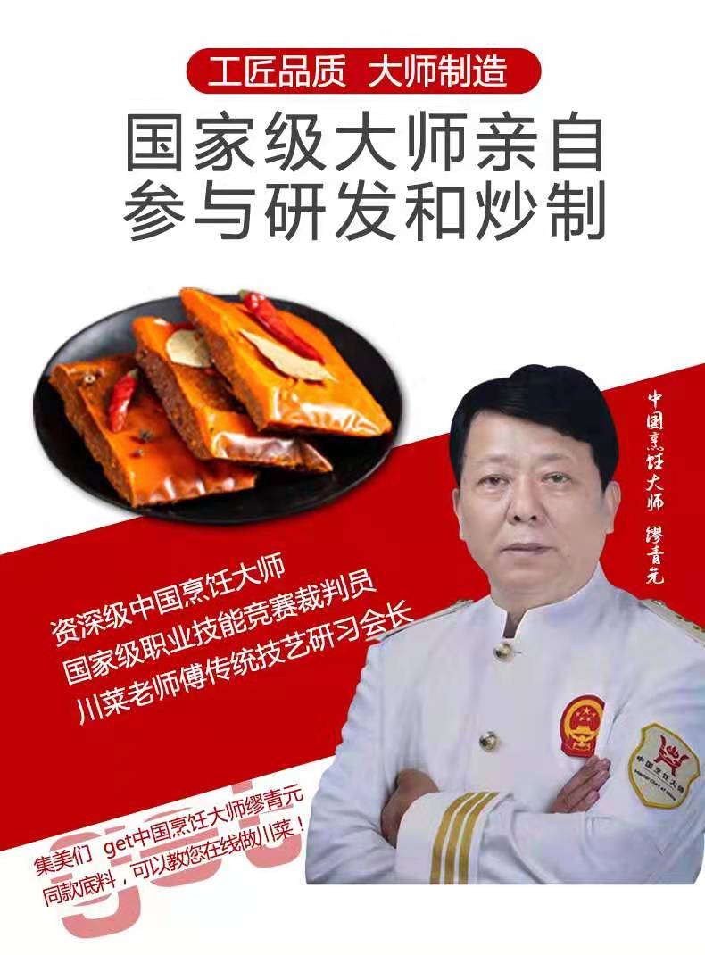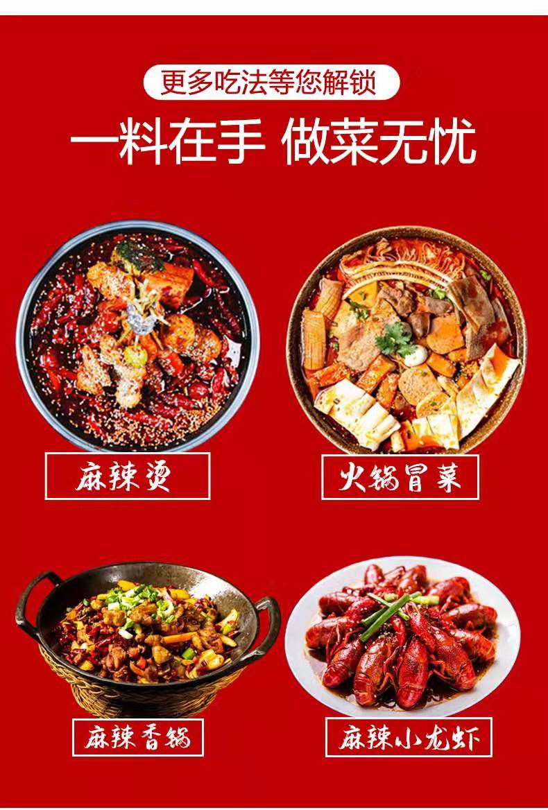 精选原材料:采用郫县豆瓣酱,东南亚进口香辛料(八角,大料,香叶,桂皮),汉源红花椒。