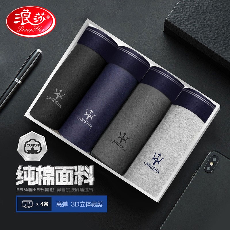 团购—浪莎男士纯棉平角内裤