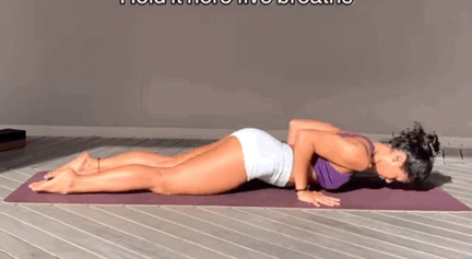 呼气,收紧核心,微微弓背向上