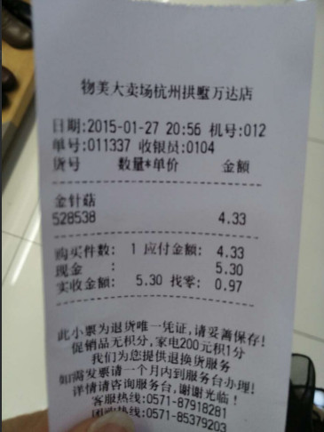 同学说,你现在吃饭都要去万达啦,这么高档的~~~然后姐默默的亮出了我的购物小票,果然很奢侈啊
