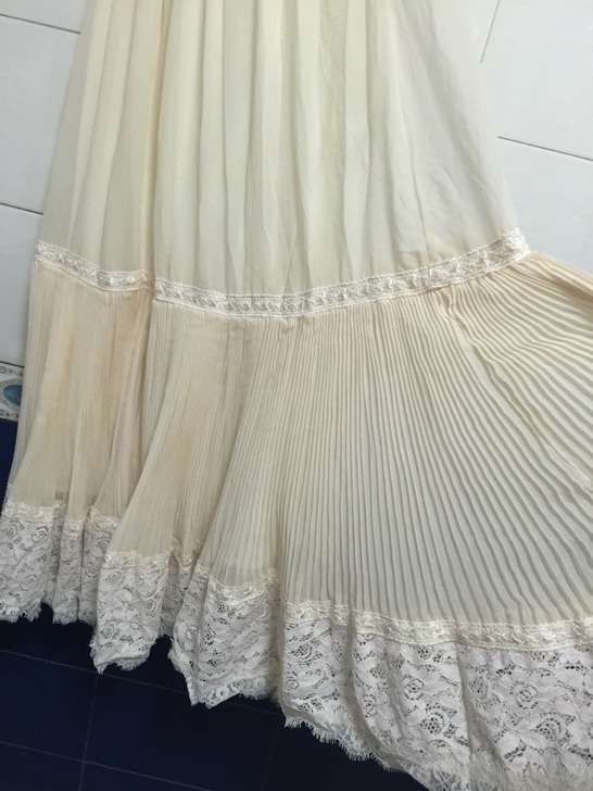 » 超大裙摆长裙蕾丝拼接米色