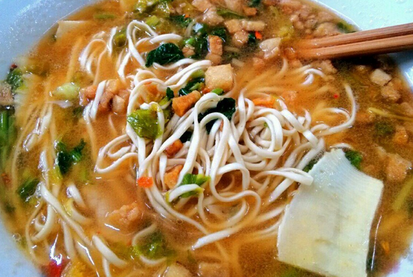 主打的片儿川汤头鲜美,绿色的雪菜配上肉片和鲜嫩的冬笋片,加上粗细合适的面条,堪称完美组合