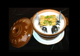 用淳牌千岛湖有机鱼为主料,以天平石笋干为配料炖制而成。鱼肉滑嫩、鲜美,野笋干清香四溢,汤浓味纯,极富浙江地方特色风味的汉族名菜。