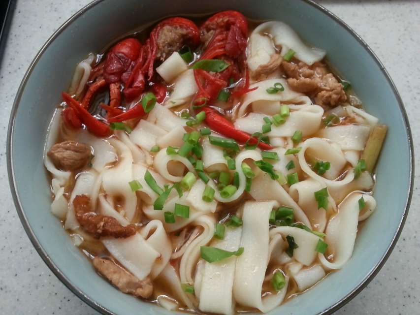 米面(江西又叫荡粉),汉族小吃,大米水磨成浆,在圆簸箕上倒上米浆荡匀成薄薄的一层蒸制成形,刀切成丝,入汤煮熟。佐以精肉丝、香菇丝。也可加老母鸡汤,味道鲜美。面皮厚薄均匀,切条工整,汤味鲜美。