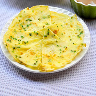 原材料有鸡蛋和葱花,加入面粉中煎制而成。煎出的饼口感软嫩,老少皆宜。 葱花鸡蛋饼是用葱花和鸡蛋做成的饼,北方食用的比较多。单吃时的葱香、蛋香萦绕口中,如果再配上些小菜,一碗米粥,可称为一道营养美味的中式小餐。 还可卷入喜欢的食材、涂上喜欢的酱料一同食用!