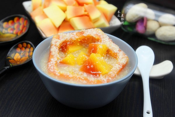 木瓜,营养丰富,具有美容功效。小麦胚芽位于小麦的基部,体积虽小却孕育着小麦的生命、没有胚芽,小麦无法生长,是大自然馈赠的营养宝库。素有“植物燕窝”的美誉,营养价值高。木瓜与麦胚一起煮,五分钟就能搞定的营养早餐。