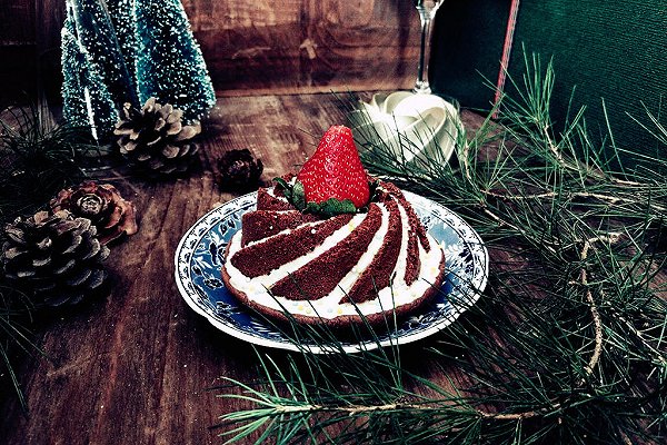 用的是小山进的巧克力磅蛋糕的方子,用量是原配方的一半,甜度刚好,可以做2-3个学厨迷你旋风不粘中空蛋糕模。原配方中在入烤箱前,拌入了30克牛奶巧克力和60克甜巧克力,此处省略了。学厨旋风模的华福双层不粘涂层,不粘效果明显,脱模无压力,成品形状完整美观,凹造型必备。表面浇了少许酸奶,装饰了草莓和彩糖粒,很适合圣诞节的气氛。