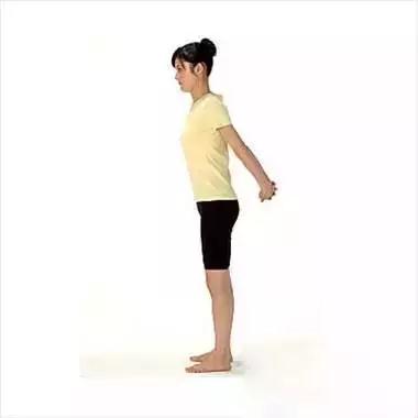挺直腰杆站立,双脚打开到与腰同宽,双手伸直手臂,在身后十指相扣,一边呼气,一边拉伸背部,扩张胸部。保持该动作10-30秒钟。
