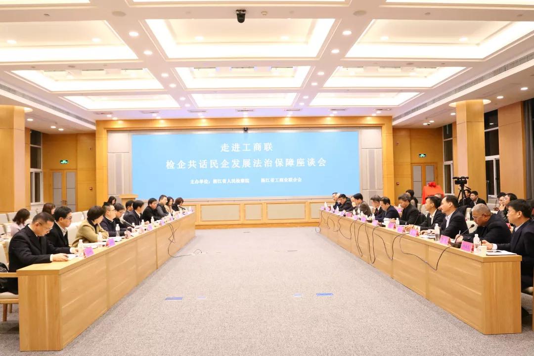 12月28日,浙江省人民检察院党组书记、检察长贾宇带队走进省工商联,召开省检企共话民企发展法治保障座谈会。省人民检察院党组书记、检察长贾宇,省人民检察院党组成员、副检察长黄生林,省工商联主席、省商会会长王建沂,