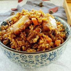 原料:大米150克,糯米50克,排骨400克,香菇2-3朵,胡萝卜半根、腊肠1根。